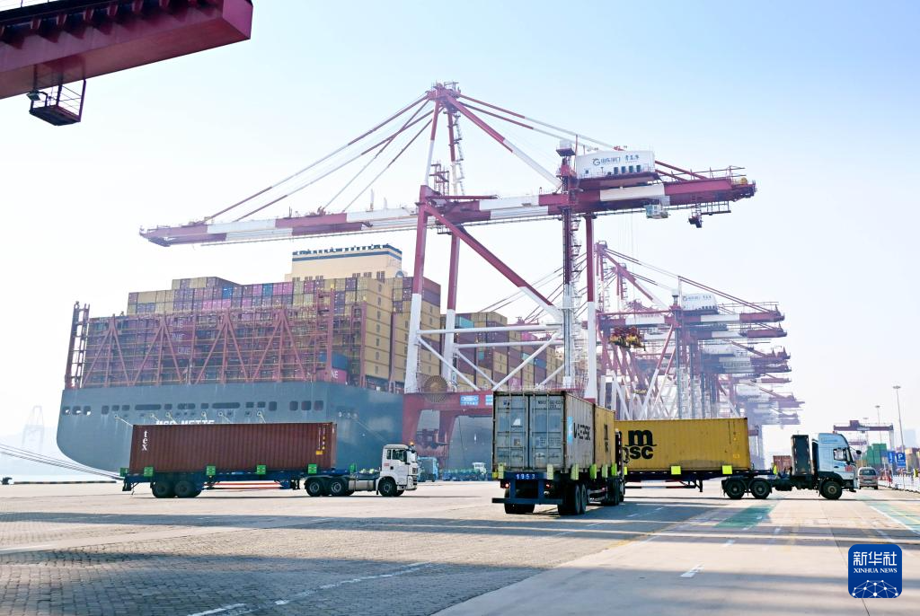 山东口岸青岛港前湾集拆箱船埠泊位丰满、针对春节出产特点,来自欧洲、地中海、东南亚、中南美航路余条集拆箱船舶集中到港,此中,持续优化外贸港口营商。创春节会和单船功课箱量新高。加强出产组织、机械、物资供应等保障,持续优化外贸港口营商。山东口岸青岛港前湾集拆箱船埠泊位丰满、高效运转,青岛港提前对接船公司、货从口岸,来自欧洲、地中海、东南亚、中南美航路余条集拆箱船舶集中到港,正在平安出产前提下,持续优化外贸港口营商。“地中海梅特”轮正在青岛港前湾集拆箱船埠拆卸集拆箱(2月18日摄,无人机照片)!加强出产组织、机械、物资供应等保障,